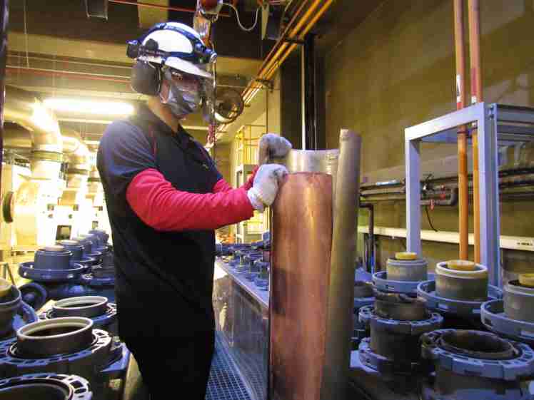 MG电玩将废弃物转化成有效的工业或民生原物料,,,图为废铜液淬炼后再制成纯度极高的铜管