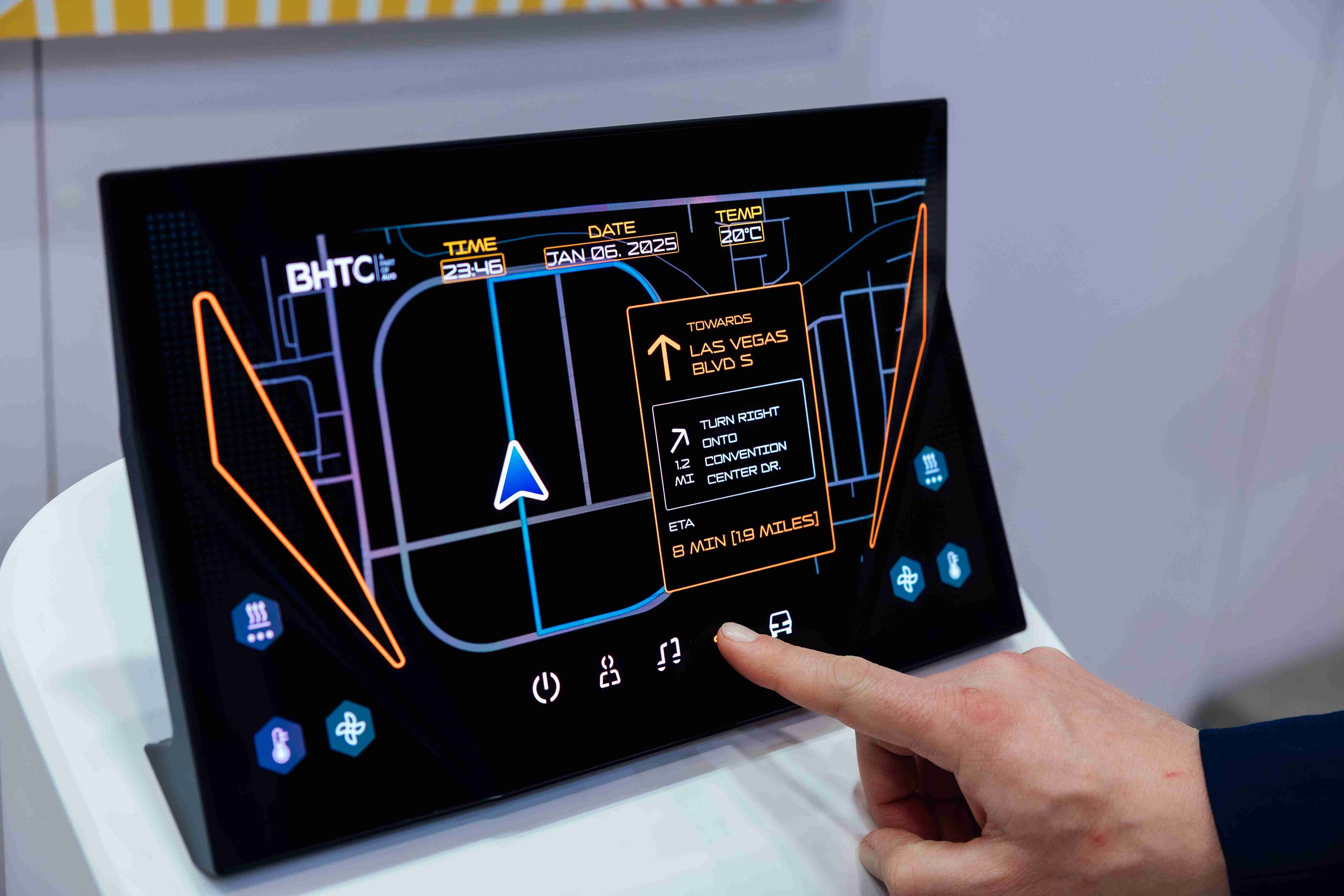 Micro LED可折迭触控显示器(Haptifold Display)结合BHTC多年HMI设计经验,,整合中控台和温度控制功能,,,,以优美的曲面和独特的外型助力车内设计美学,,,,在辅以触控回馈下,,,,为驾驶带来更直觉的使用体验。。