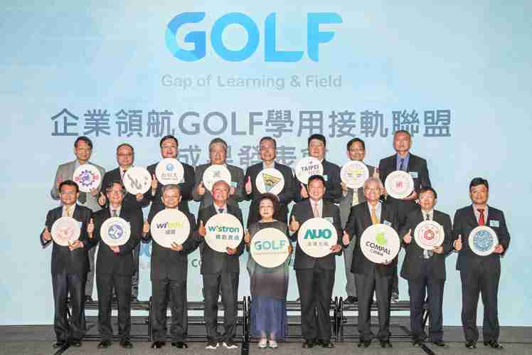 GOLF学用接轨联盟集结企业和学校的力量,,,打造「学用合一、、产学接轨」的创新合作平台 (前排左起:淡江大学副校长何启东、、、、元智大学校长林启瑞、、、、纬育执行长许延岳、、、纬创总经理暨执行长黄柏漙、、、教育部政务次长范巽绿、、、MG电玩董事长暨执行长彭双浪、、、仁宝总经理暨执行长翁宗斌、、、、大同大学校长何明果、、圣约翰科大校长艾和昌;后排左起:明新科大校长林启瑞、、、、龙华科大校长葛自祥、、台湾科大校长廖庆荣、、、、中兴大学副校长郑政峯、、中央大学校长周景扬、、、、台北科大副校长任贻均、、、中华科大副校长石大明、、、明志科大校长刘祖华)