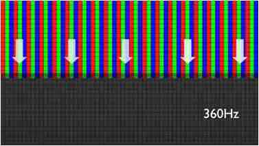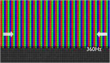 传统液晶驱动是从左到右单向进行,,在画面更新速度愈来越愈快的情况下,,位于驱动线路末端的右下角区域,,,画素的闸极来不及在短时间内获得足够电压,,无法显示出正确的颜色资讯。。 |